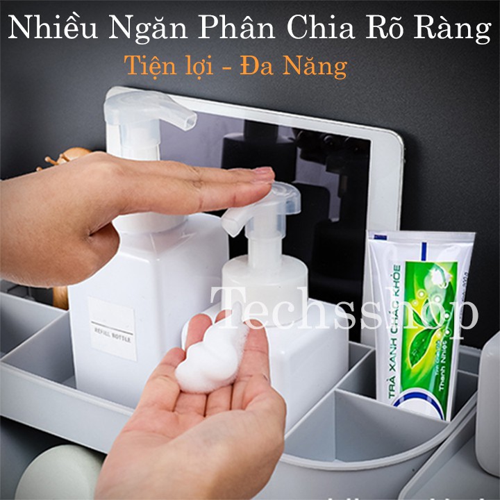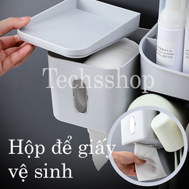 Kệ chia làm 3 bộ phận chính là thân kệ, hộp đựng giấy, hộp tủ đồ nhỏ. Thân kệ với các vách ngăn nông sâu khác nhau có lỗ thoát nước rất thông thoáng và khô ráo. Trên có khe để điện thoại, ipad rất tiện lợi trong sinh hoạt đời sống hằng ngày