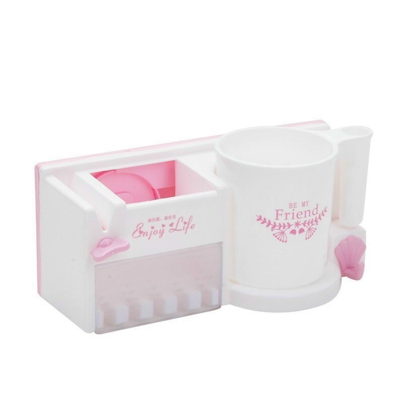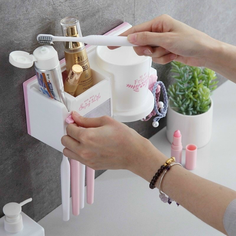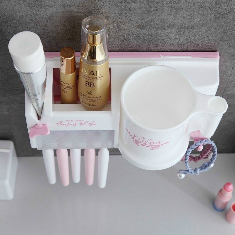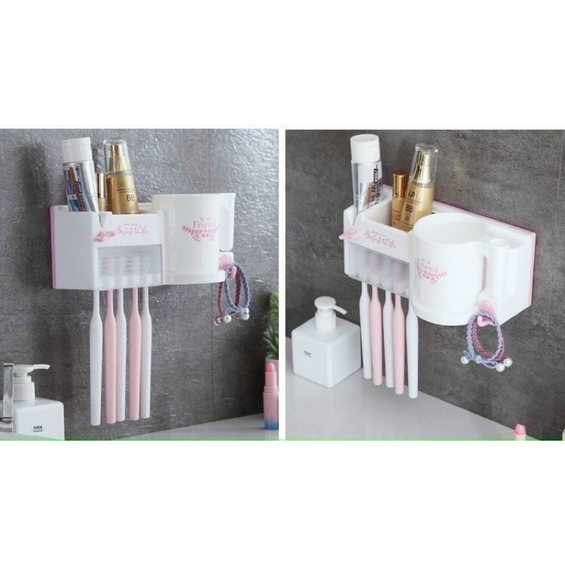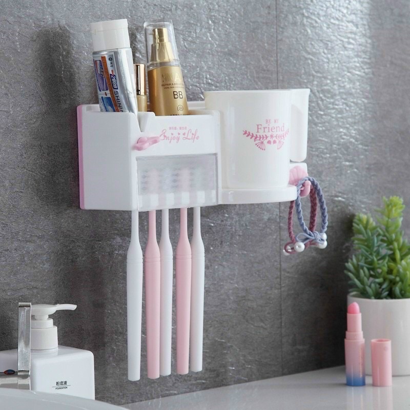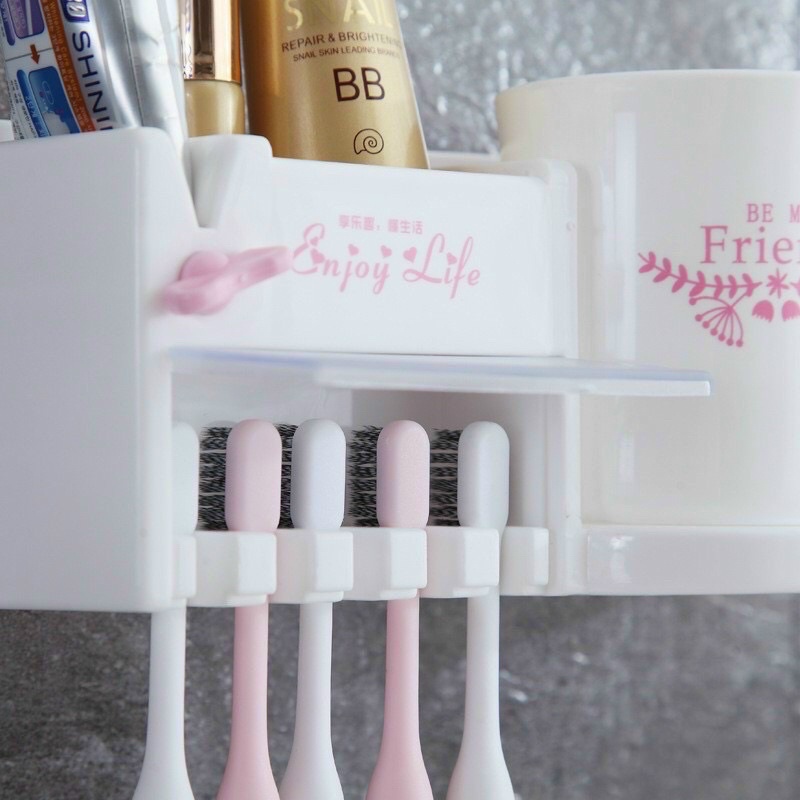 – Thiết kế đa năng gồm 3 lỗ cắm bàn chải và 1 lỗ để kem đánh răng, 1 cốc đánh răng không quai.