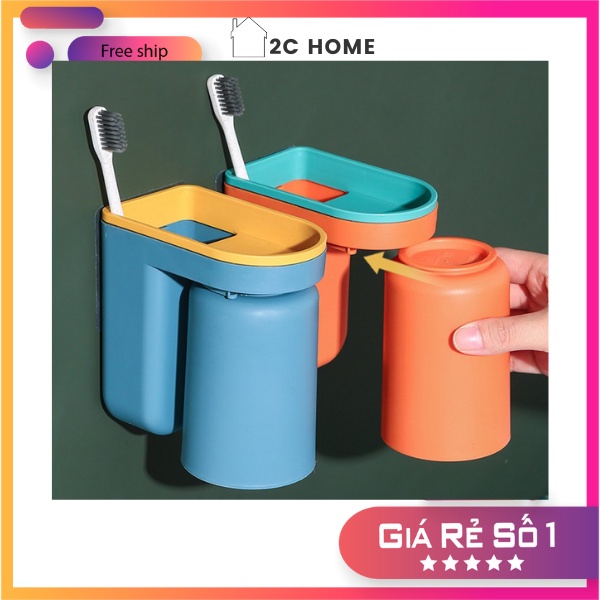 Kệ Để Bàn Chải Kem Đánh Răng Dán Tường Treo Phòng Tắm - Khay Đựng Bàn Chải Đánh Răng Kèm Cốc Gọn Gàng Tiện Lợi – 2C Home