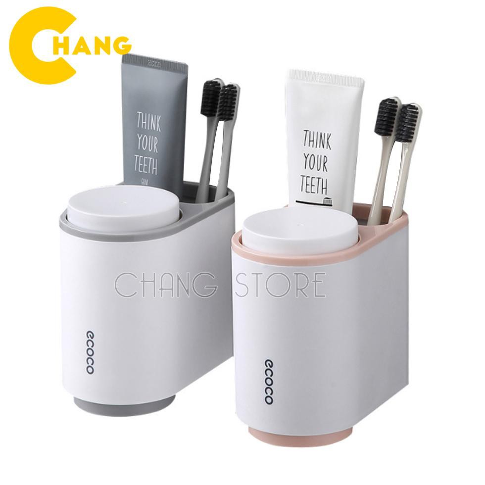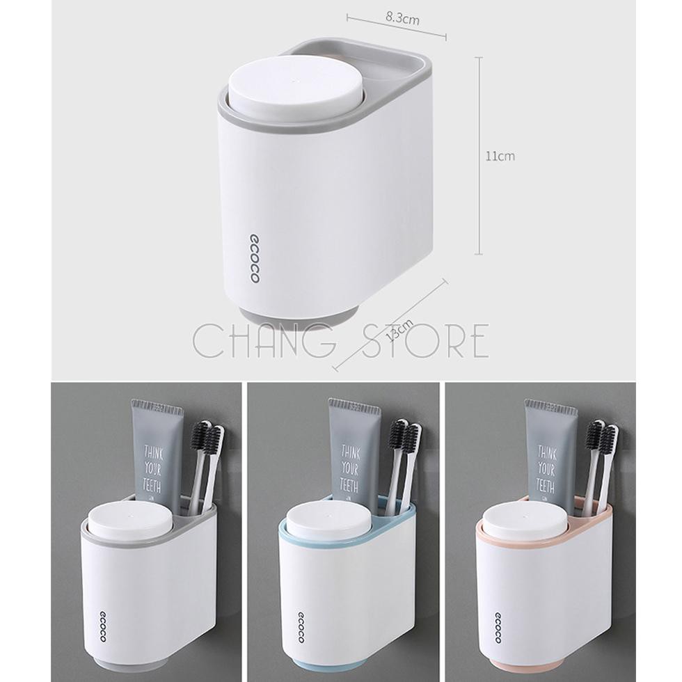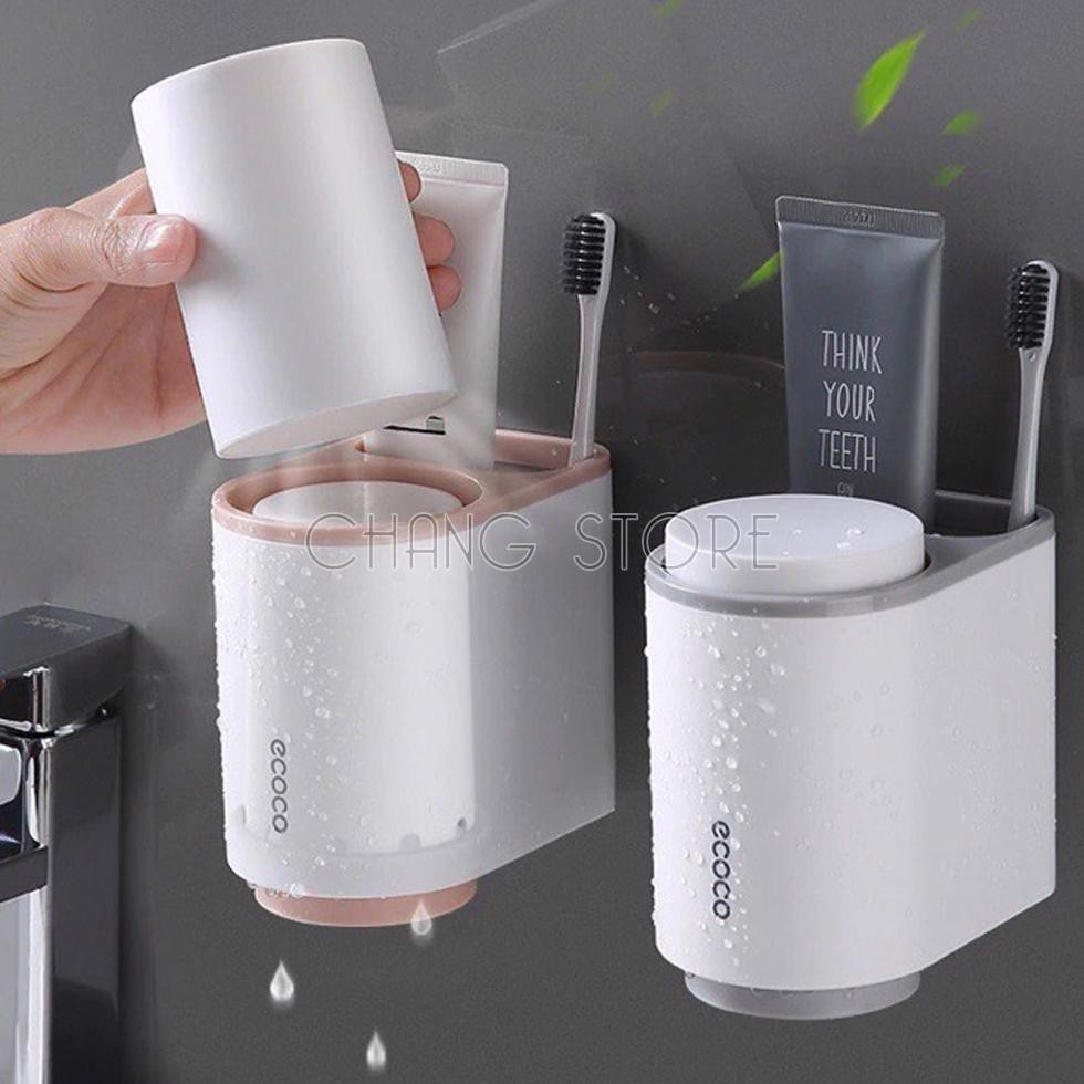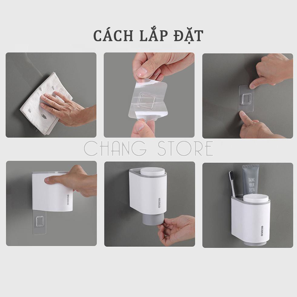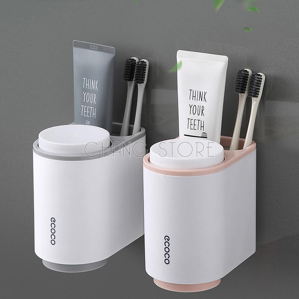 Kệ để Bàn Chải Kem Đánh Răng Mini Ecoco dán cường lực siêu chắc tặng kèm 2 cốc từ tính