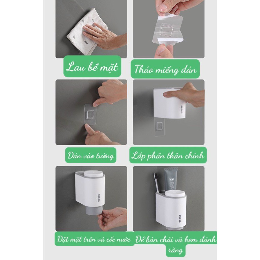 Giới thiệu Kệ Để Bàn Chải Kem Đánh Răng Kèm 2 Cốc Hút Nam Châm, Bộ Nhả Kem Rời, Kệ Nhà Tắm Thông Minh Dán Tường