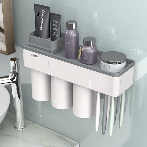Kệ Để Bàn Chải Kem Đánh Răng OENON, Cốc Hút Từ Tính Nhả Kem Đánh Răng Tự Động Không khoan tường cao cấp