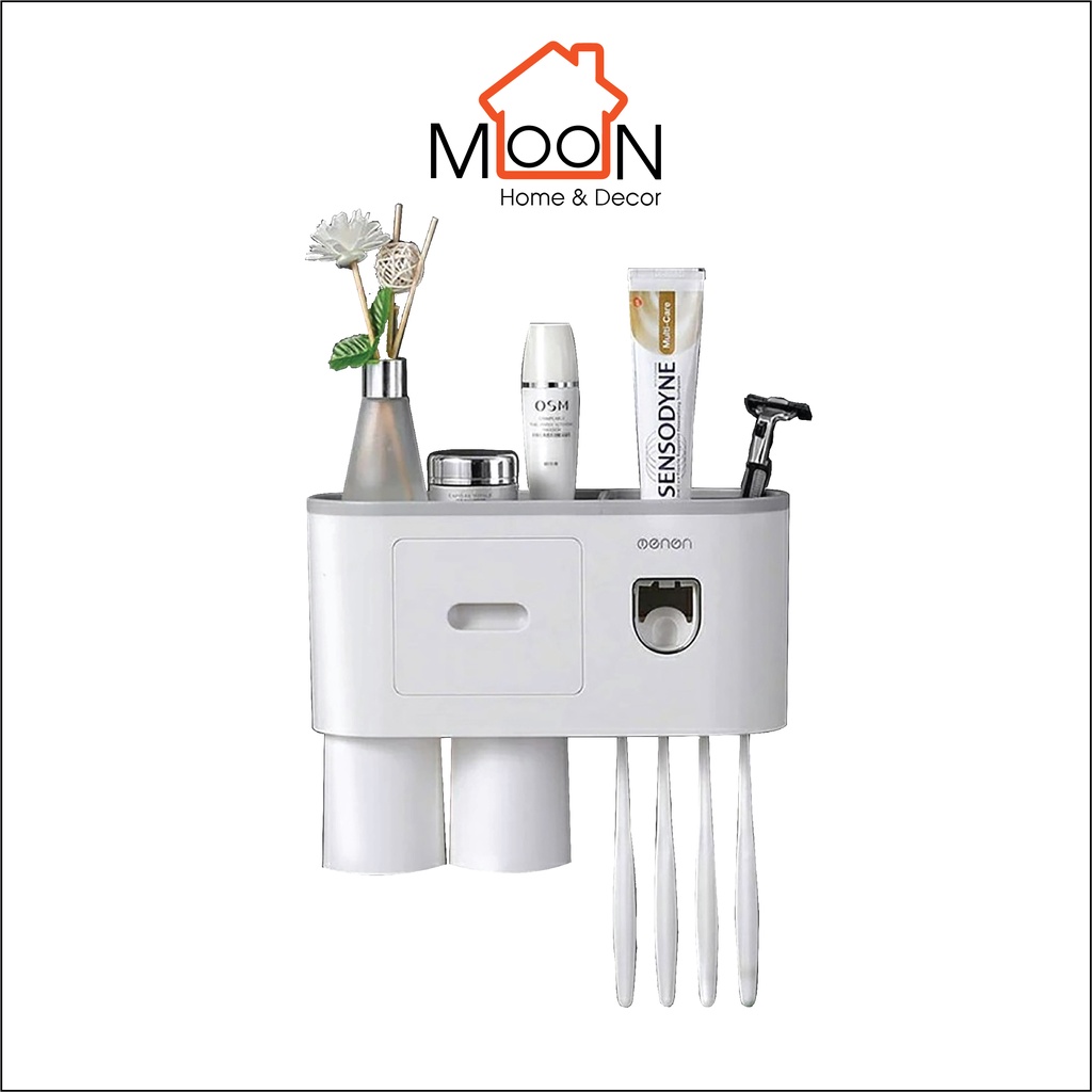 Kệ Để Bàn Chải Kem Đánh Răng OENON, Cốc Hút Từ Tính Nhả Kem Đánh Răng Tự Động Không khoan tường 2 cốc