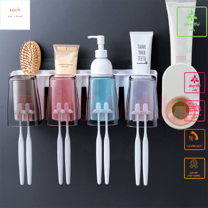 Kệ để bàn chải nhả kem đánh răng Giá treo bàn chải đánh răng kèm cốc Cao Cấp (SẴN BUÔN SỈ)-THO060