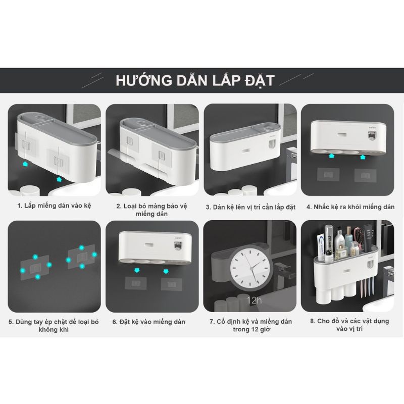 - Bộ sản phẩm bao gồm: Kệ đựng đồ đa năng - để bàn chải đánh răng - để cốc đánh răng - nhả kem đánh răng tự động - ngăn kéo đựng đồ+ chỗ để sữa tắm - sữa rửa mặt - dầu gội - đựng bông ngoái tay - điện thoại + cốc nhựa xinh xắn