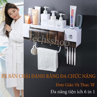 KỆ ĐỂ BÀN CHẢI NHẢ KEM ĐÁNH RĂNG ĐA CHỨC NĂNG 6 IN 1 - Loại 3 cốc và 4 cốc