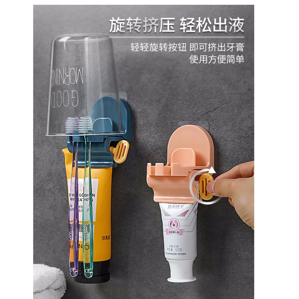 Kệ Để Bàn Chải Và Cốc Đánh Răng Kèm Đồ Nặn Kem Đánh Răng Nhỏ Gọn Dán Tường Tiện Lợi