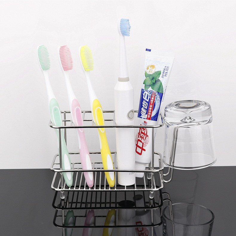 Kệ để bàn chải và kem đánh răng chất liệu Inox - có thể treo lên tường hoặc để trên bàn - Kèm miếng dán