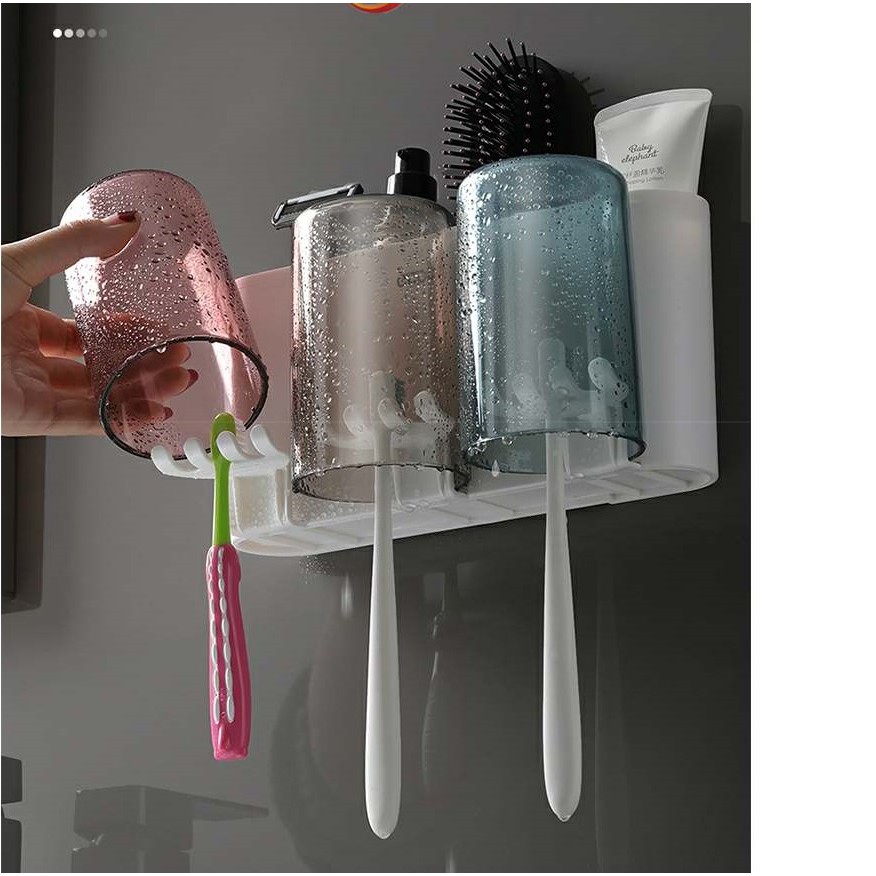 Nhà Cửa & Đời Sống > Đồ dùng phòng tắm > Kệ để đồ phòng tắm || Kệ để bàn chải và kem đánh răng kèm 3 cốc trong suốt E1925Còn hàng