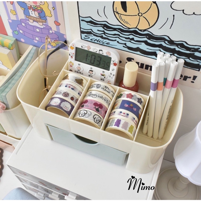 - Ngoài sử dụng để đựng mỹ phẩm chị em có thể dùng để nhiều vật dụng khác tùy theo nhu cầu như đồ dùng văn phòng phẩm (bút, tẩy, kéo, băng dính…) hay dùng để làm khay muỗng đũa cũng rất đáng yêu.