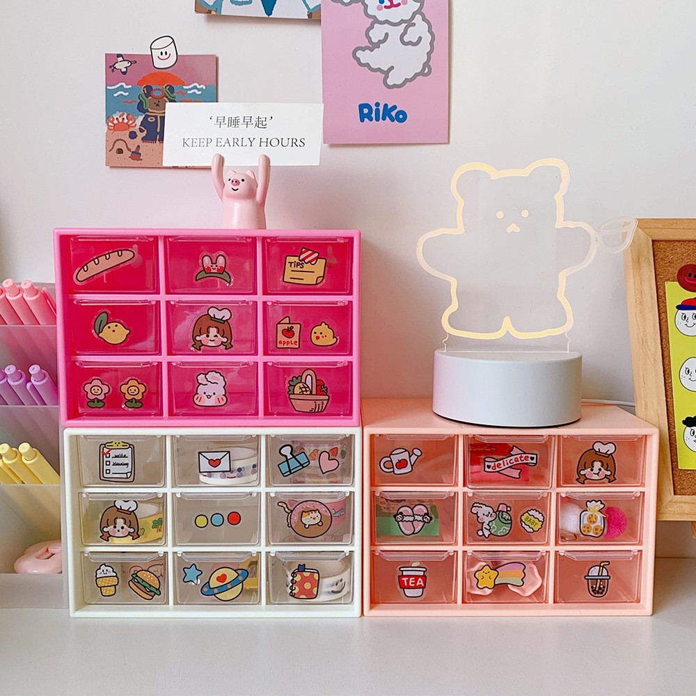 Kệ Để Bàn Mini 6 và 9 Ngăn Đựng Văn Phòng Phẩm Tiện Lợi Decor Xinh Xắn [Không Kèm Sticker]