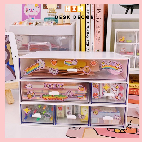 Kệ để bàn trong suốt, Tủ đựng đồ mini đa năng cho học sinh có thể xếp chồng " Tặng kèm Sticker trang trí "Kệ được thiết kế theo phong cách đơn giản , hiện đại với gam màu chủ đạo là trắng .....bạn có thể xếp chồng các hộp lên nhau để tạo thành 1 tủ đựng đồ mini.