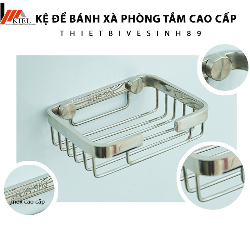 Kệ để bánh xà bông tắm cao cấp inox 304:* Kệ để bánh xà bông tắm được đúc nguyên từ inox 304 cao cấp, inox không gỉ, siêu bền.