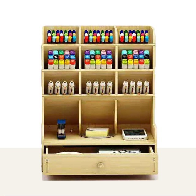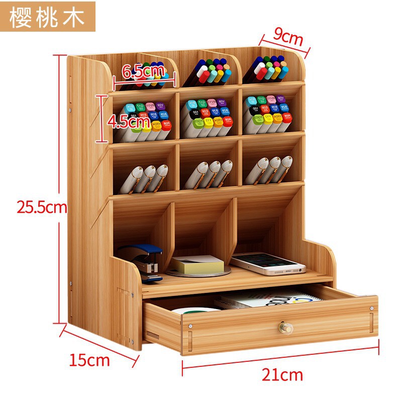 Kệ đựng bút văn phòng ảnh thật bằng gỗ giá 4 tầng để đồ phụ kiện chia ngăn hộp cắm bút chia màu để bàn mỹ thuật