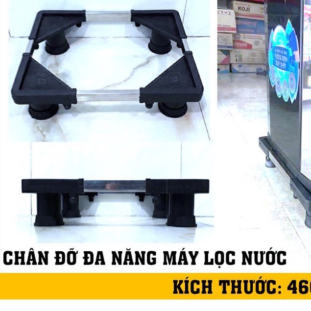 Kệ Để Chân Máy Lọc Nước Inox Đa Năng Cao Cấp HT - Điều Chỉnh Theo Kích Thước Trụ Inox, Đế Cao SuKệ Để Chân Máy Lọc Nước Inox Đa Năng có thêm một lớp đế nhựa cao su mềm nhằm giảm chấn và tăng độ bám, không bị trơn trượt.Bốn chân dùng chất liệu ống inox khả năng chịu lực chắc chắn lên đến 300kg. Kể để chân đa năng có thể sử dụng cho máy lọc nước, Loa đứng, máy lạnh đứng... Khung bằng các thanh hộp inox vuông 25mm dày 0.9ly. Các thanh inox này nhằm kết nối các chân đế với nhau thông qua vít.Sản phẩm dễ dàng lắp đặt sử dụng, các chị em nội trợ vẫn có thể tự tay làm. Min: 30cm(rộng) x 30cm(dài) x 10cm(cao) Điều chỉnh Max: 460cm(rộng) x 46cm(dài) x 10cm(cao) Xuất xứ thương hiệu Việt Nam Nơi sản xuất Việt Nam