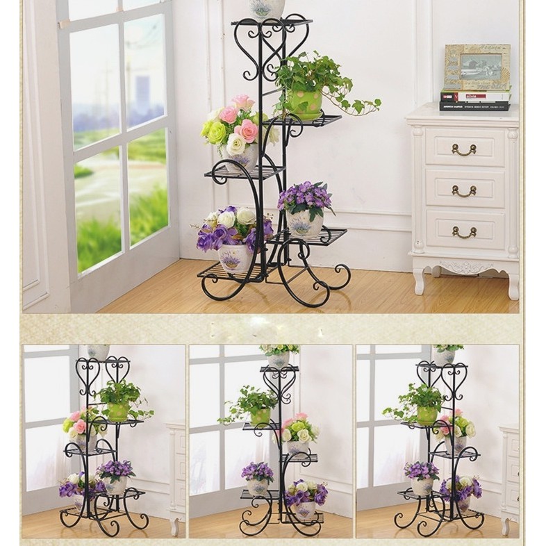 Kệ để chậu hoa 5 tầng được bằng sắt vững chắc, giá đỡ chậu hoa này sẽ làm nổi bật thêm vẻ đẹp của chậu hoa, làm điểm nhấn thu hút cho không gian nhà bạn.