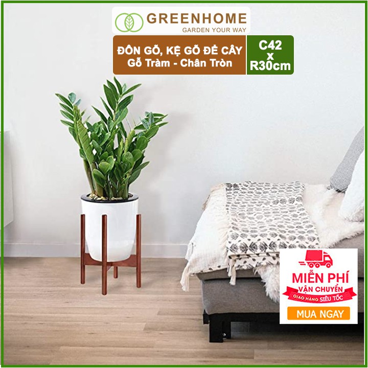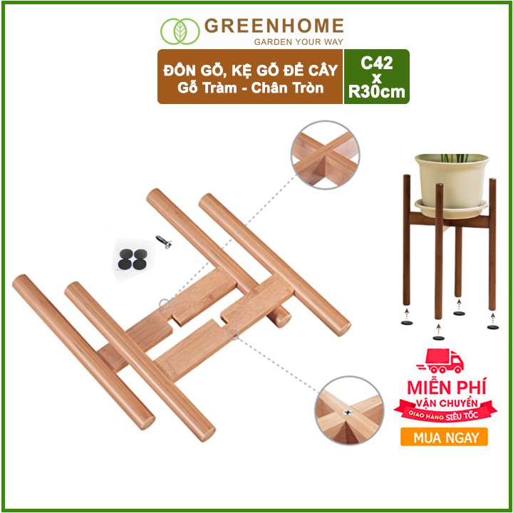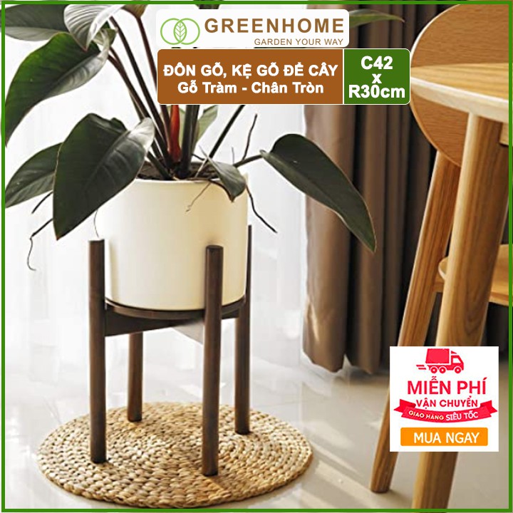 Nhà cửa & Đời sống > Nội thất > Kệ & Giá || Kệ để chậu hoa, C42xR32cm, chân tròn, màu gỗ, gỗ tràm siêu cứng tặng 4 miếng dán chống trầy sàn - GreenhomeCòn hàng