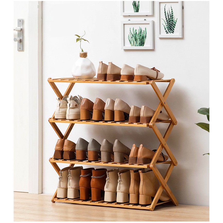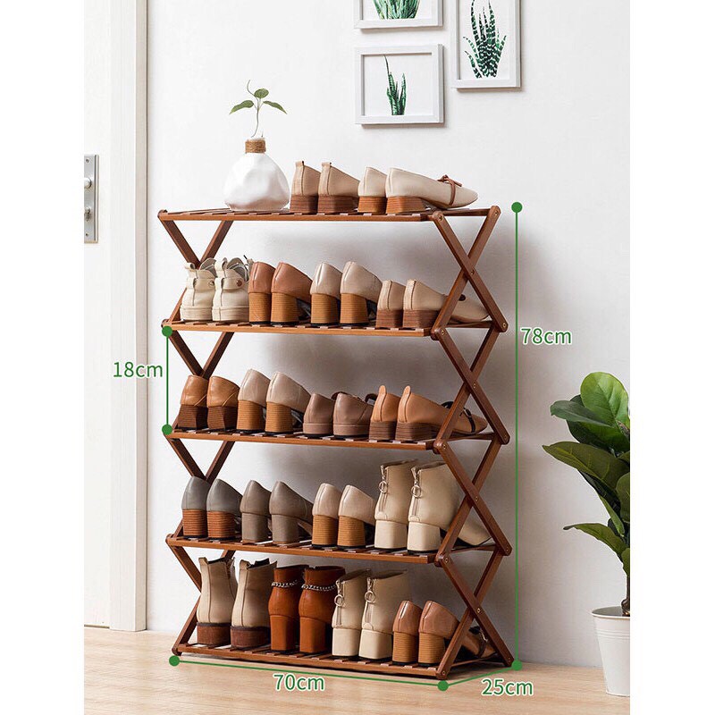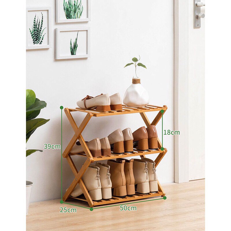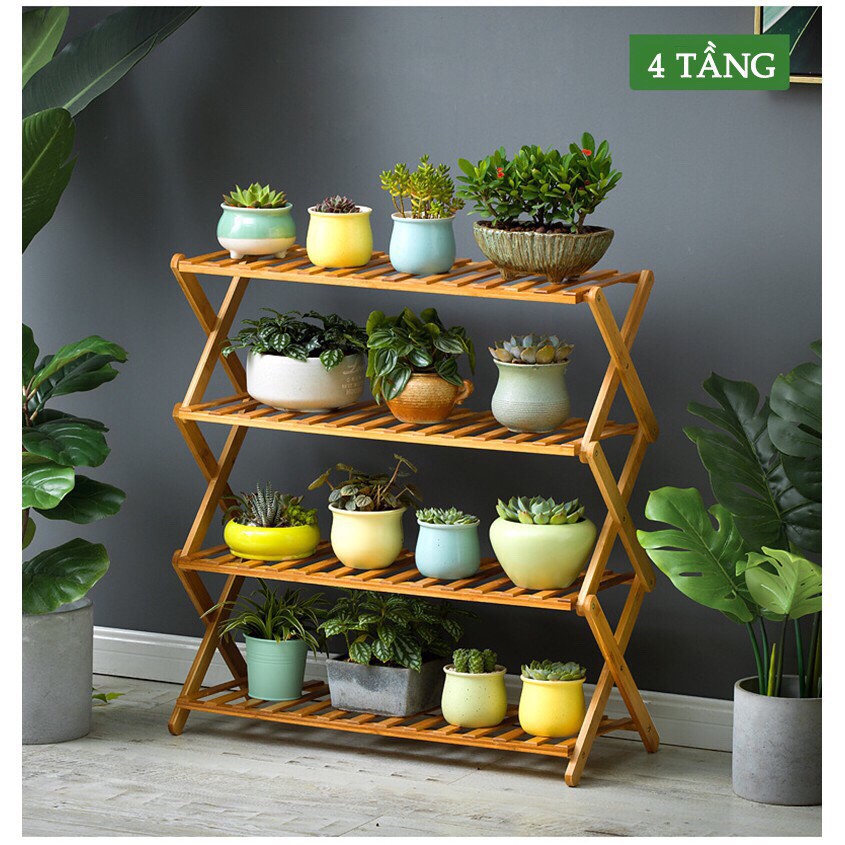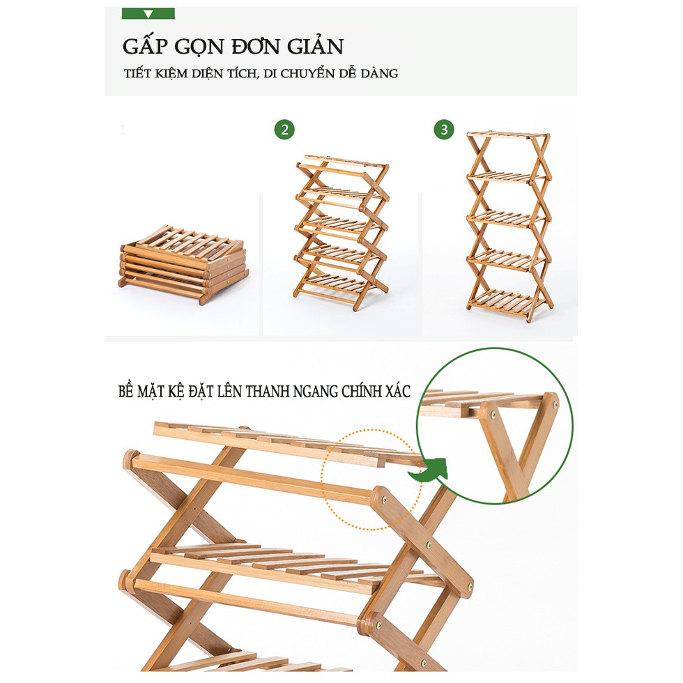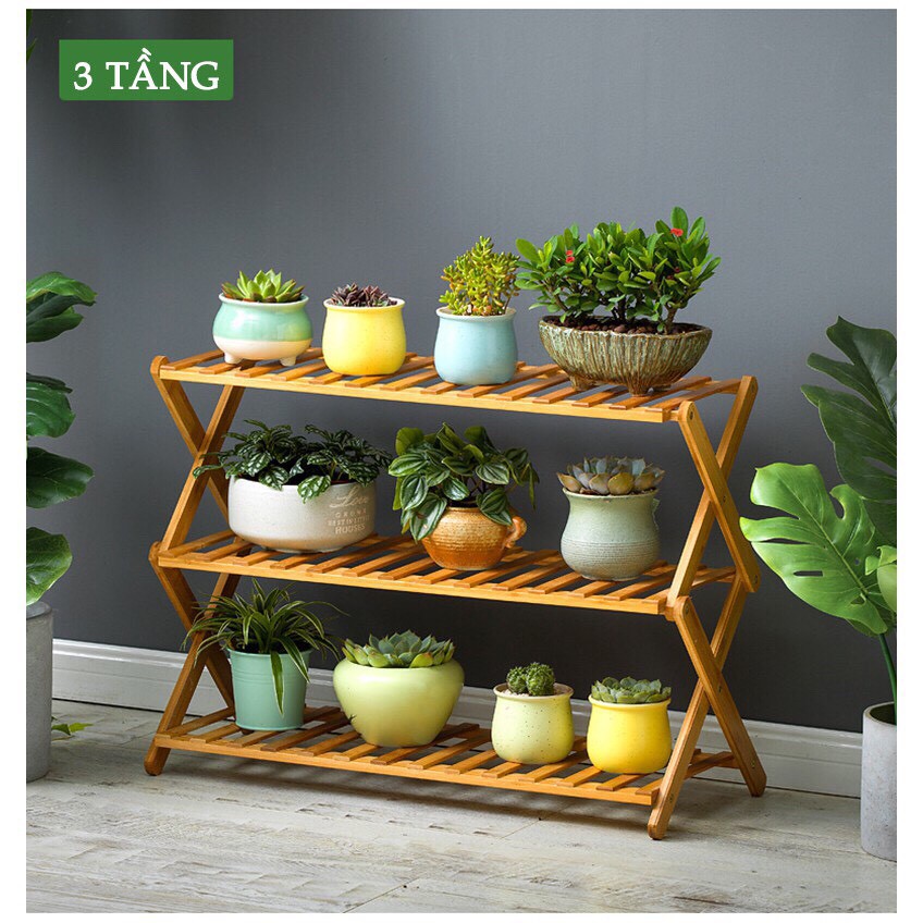 Kệ để chậu hoa cây cảnh kệ để giày dép đa năng gỗ tre gấp gọn