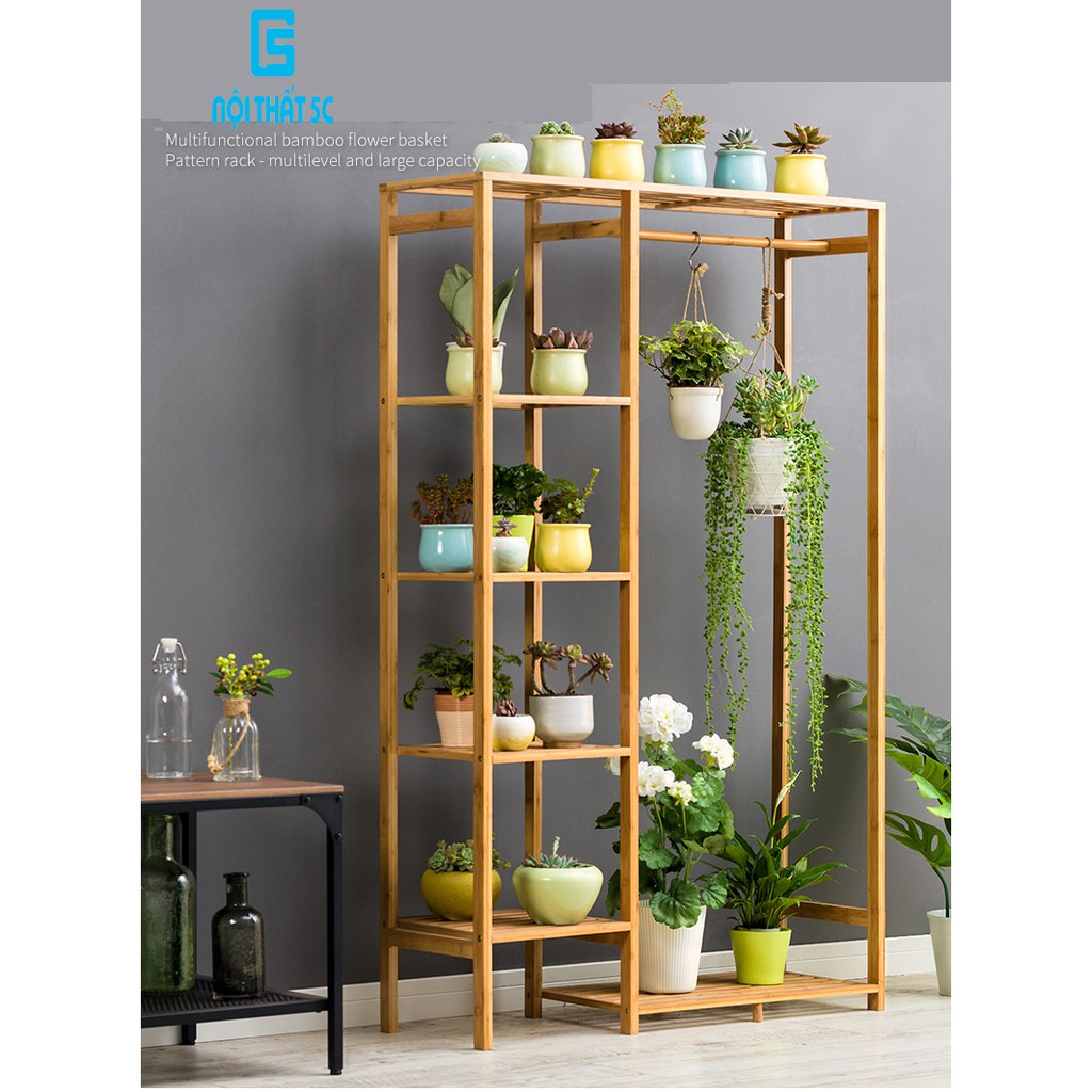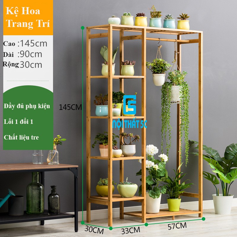 Nhà cửa & Đời sống > Nội thất > Kệ & Giá || Kệ để chậu hoa cây cảnh, kệ trang trí đa năng trong nhà có thanh treo gỗ tre phong cách Hàn QuốcCòn hàng