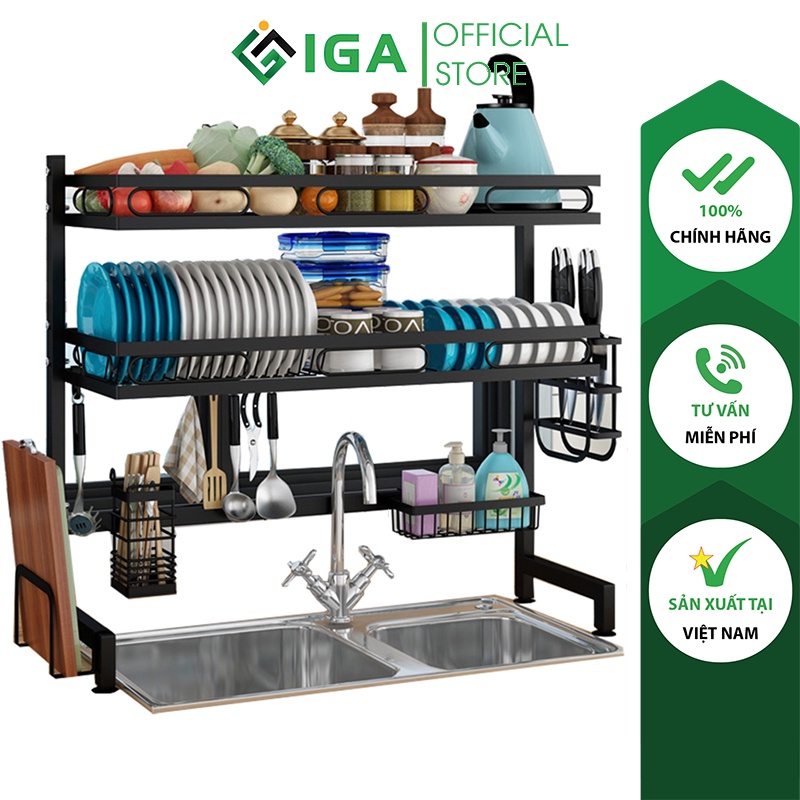 Kệ để chén đĩa thông minh IGA trên bồn rửa bát 2 tầng cao cấp Chính Hãng