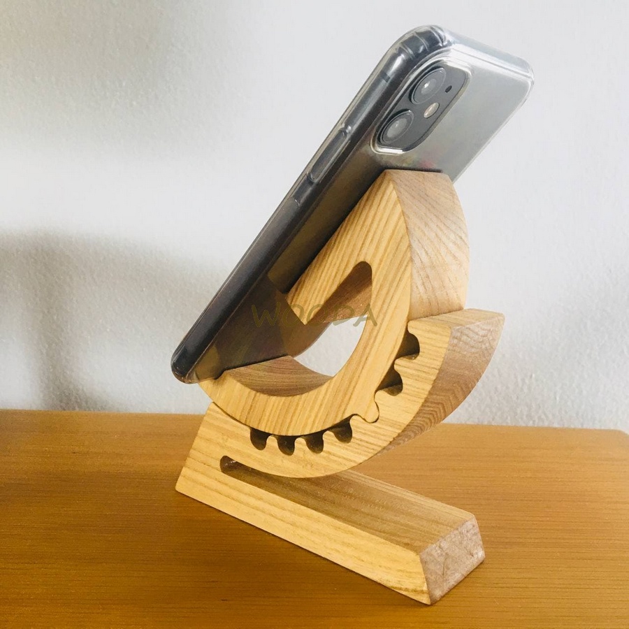 Điện Thoại & Phụ Kiện > Phụ kiện > Phụ kiện selfie > Giá đỡ || Kệ để điện thoại thông minh hình bánh răng bằng gỗ ash (tần bì) cao cấp nguyên khối, dễ dàng thay đổi độ nghiêngCòn hàng