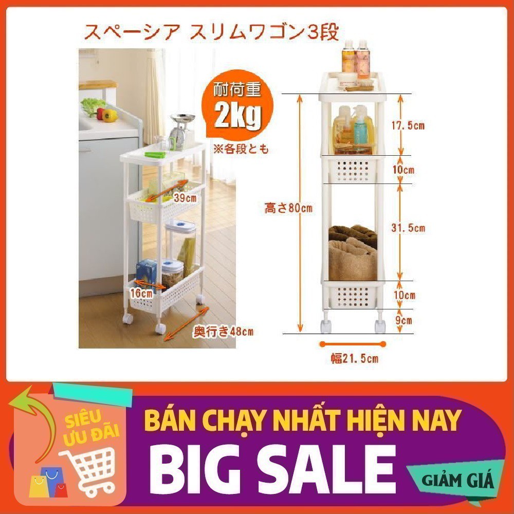 Kệ để đồ 3 tầng cao cấp có bánh xe Nhật BảnKệ này tiện lợi vô cùng nha các mẹ, ứng dụng đa năng, các mẹ có thể dừng được từ phòng bếp, nhà tắm tới phòng ngủ đều được!