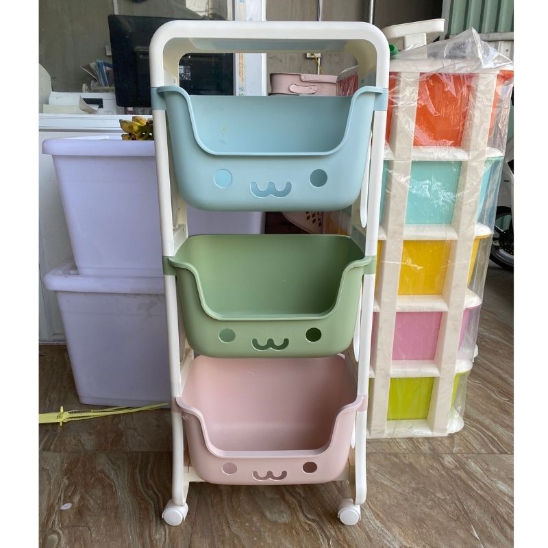 Siêu xịn xò luôn ạKệ 3 Tầng Cho Bé Hình Gấu có bánh xe, làm Kệ Đựng Đồ Chơi, Kệ Sách Cho Bé