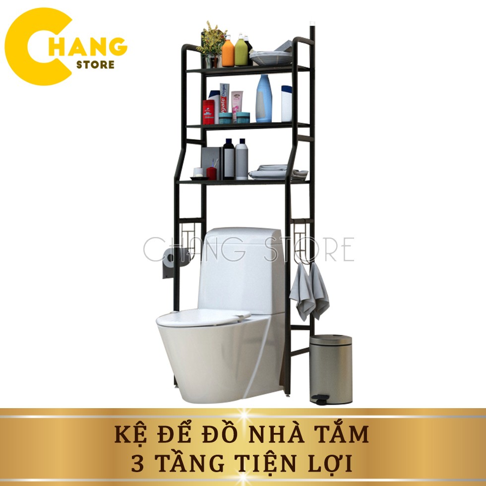 Kệ đựng đồ trên bồn cầu 3 tầng với các đặc trưng là nhỏ gọn, đẹp mắt và không kém phần sang trọng giúp không gian phòng tắm không bị trống trải mà còn giúp cho phòng tắm luôn được tinh tế hơn. Những vật dụng như sữa rửa mặt, dao cạo,…hay các đồ vật nhỏ dễ bị mất thì dùng kệ treo tường sẽ giải quyết tốt những vấn đề này