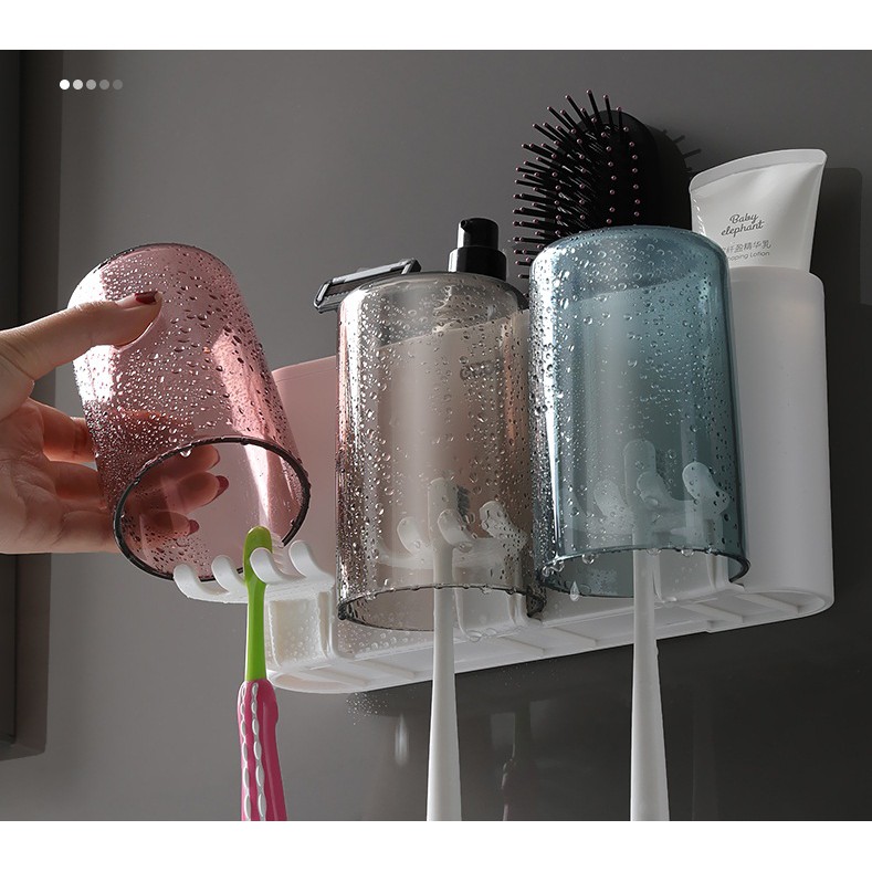Kệ để đồ bàn chải đánh răng kèm 3 cốc trong suốt Ecoco E1925