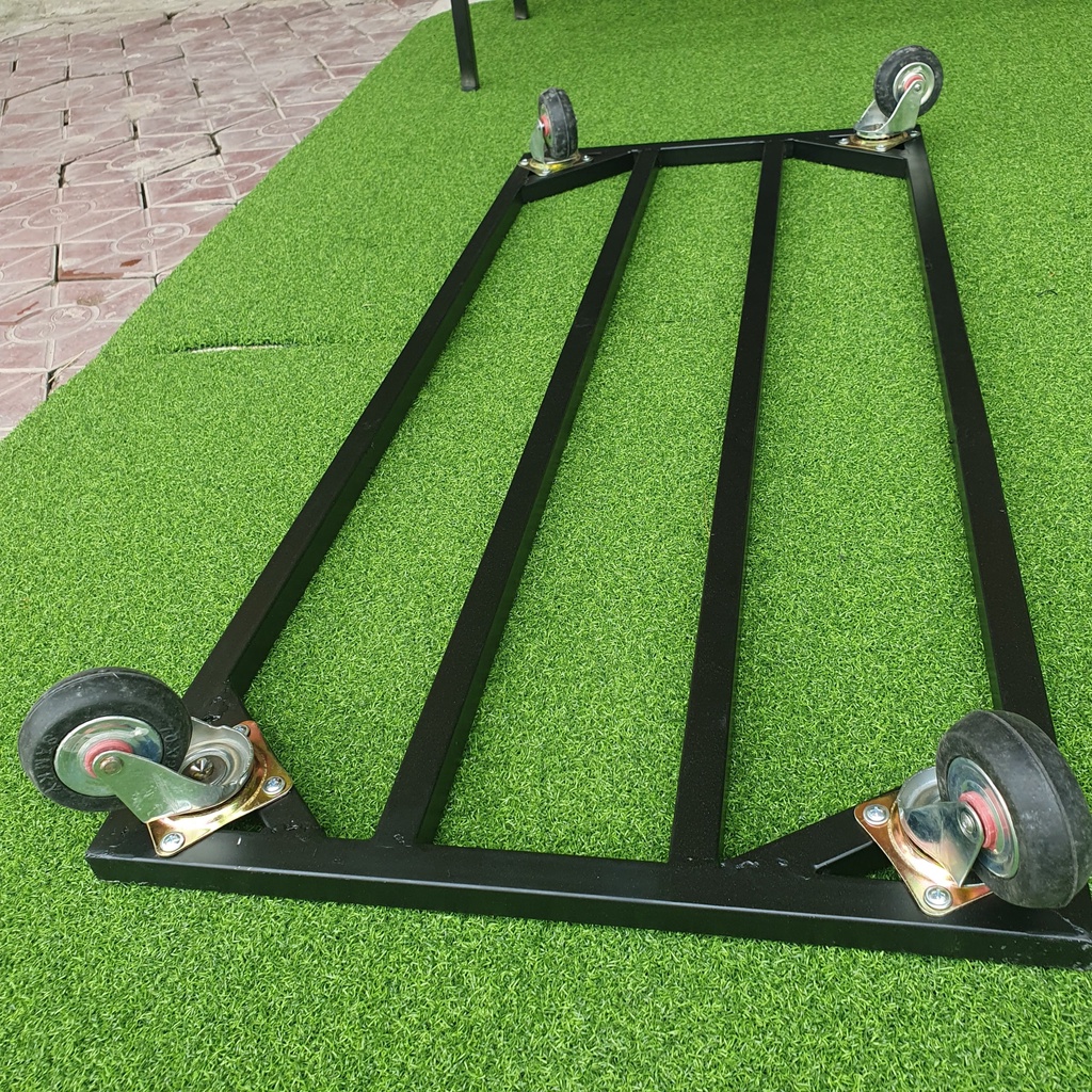 - Vật tư: Sắt hộp mạ kẽm 20x20mm, bánh xe 5cm chịu lực 50kg/ bánh xe