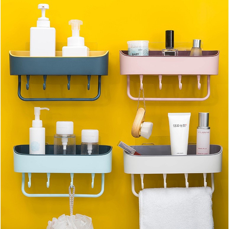 Giá để đồ nhà tắm không cần đục lỗ, gắn trực tiếp vào tường giúp tiết kiệm diện tích. Chất liệu nhựa cao cấp đặc dày, để đồ chắc chắn thoải mái. Chịu lực tốt☑️ THÔNG TIN SẢN PHẨM