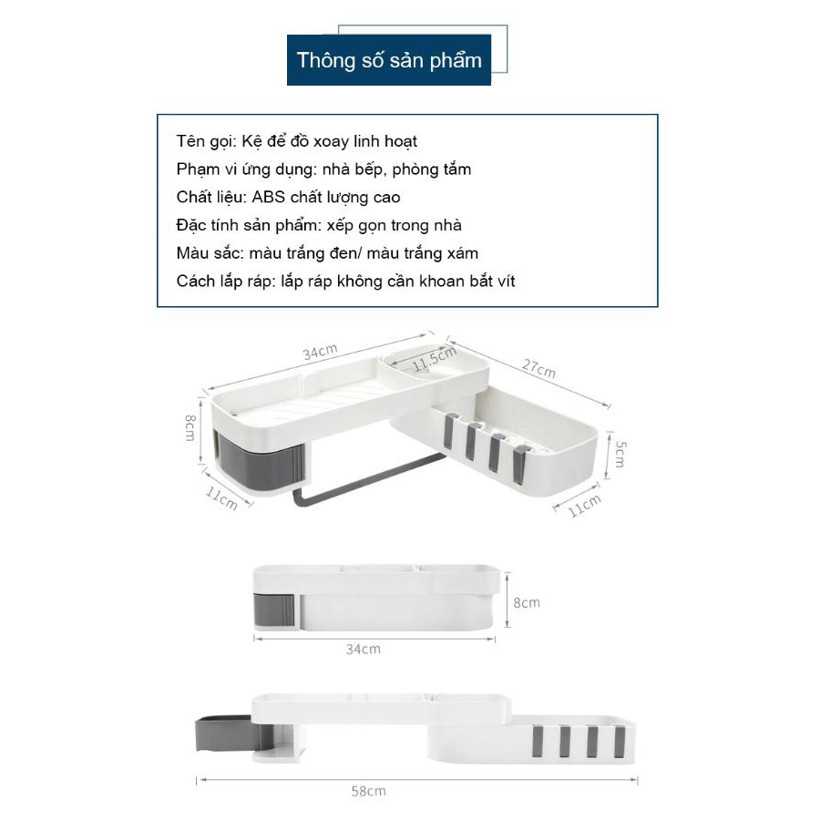 - Kệ để đồ đa chức năng xoay linh hoạt- Lắp ráp không cần khoan bắt vít, thuận tiện nhanh chóng