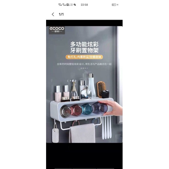 Sản phẩm mới nhất của Ecoco 2021 mới đc tung ra thị trường đc thiết kế 1 cách phá cách và hoàn hảo /-strong Chống nước tuyệt đối, chống bụi bẩn chất liệu của cốc đảm bảo chất lượng và chịu đc nhiệt độ cao lên đến 80°C còn chịu đc trọng lượng 20kg kèm theo 3 móc treo đồ và kèm khe cắm bàn chải :b