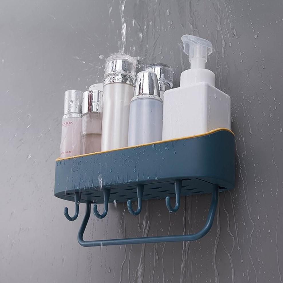 Kệ để đồ đa năng kèm móc treo thanh phơi khănĐể các đồ dùng trong nhà tắm, tiết kiệm diện tích không gian nhà tắm của bạn