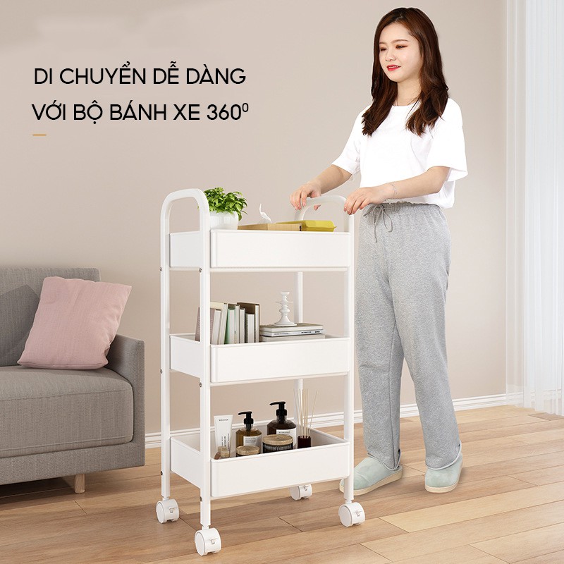Nhà cửa & Đời sống > Nội thất > Tủ bếp || Kệ Để Đồ Đa Năng VANDO Sơn Đen Trắng, Cao Cấp Có Bánh Xe, Nhỏ Gọn 3 Tầng - 4 Tầng cho SPA, Nhà Bếp, Phòng Ngủ, Phòng TCòn hàng