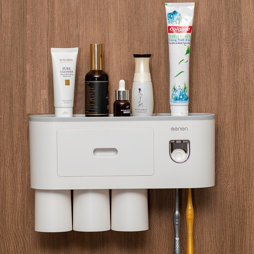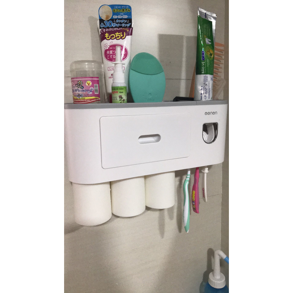 - Bộ sản phẩm bao gồm: Kệ đựng đồ đa năng - để bàn chải đánh răng - để cốc đánh răng - nhả kem đánh răng tự động - ngăn kéo đựng đồ+ chỗ để sữa tắm - sữa rửa mặt - dầu gội - đựng bông ngoái tay - điện thoại + cốc nhựa xinh xắn
