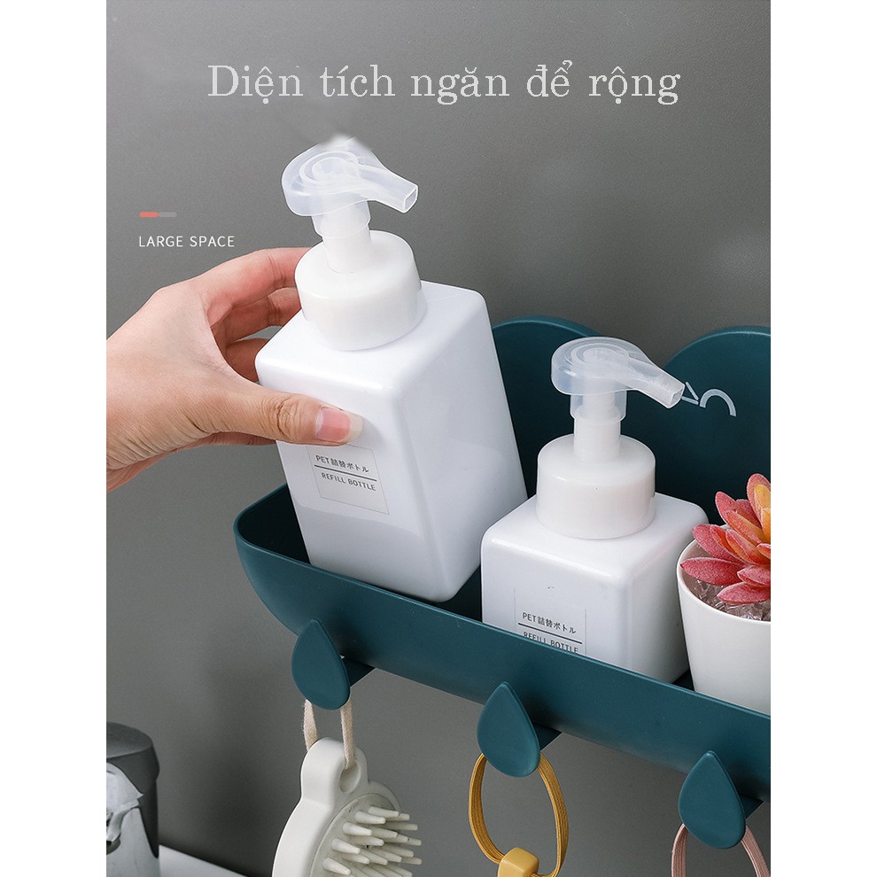 Kệ để đồ dùng phòng tắm dán tường chịu lực có móc treo