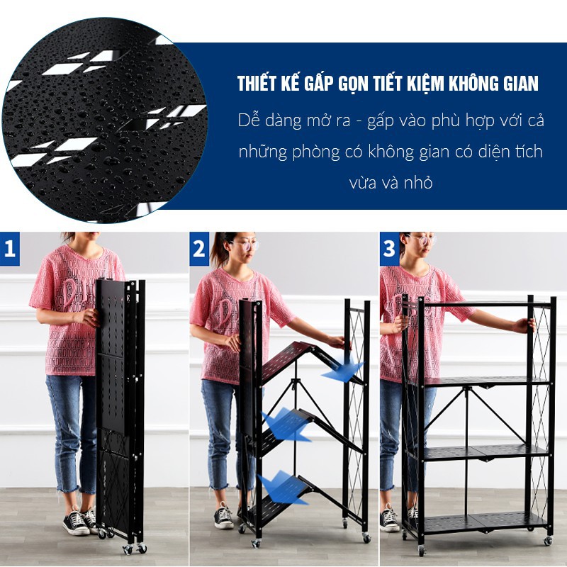 KỆ GẤP GỌN ĐA NĂNG - KÈM BÁNH XE- KỆ BẾP- KỆ LÒ VI SÓNG- KỆ ĐỂ ĐỒ TRANG TRÍ PHÓNG KHÁCH- KỆ GẤP GỌN TỐI ƯU LẮP RÁP - TIẾT KIỆM KHÔNG GIAN : Không cần lắp ghép, chỉ cần thao tác kéo ra/ gập lại gọn gàng.
