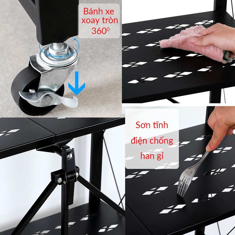 Nhà cửa & Đời sống > Dụng cụ & Thiết bị tiện ích > Xe đẩy || KỆ ĐỂ ĐỒ GẤP GỌN 3-4-5 tầng đa năng có bánh xe xoay 360 độ,BẢN NÂNG CẤP thép chống rỉ, SƠN TĨNH ĐIỆN 5 lớp xịnCòn hàng