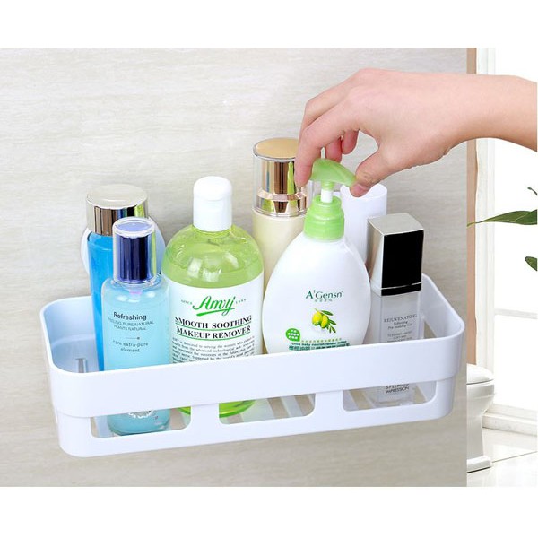 Khay Kệ Nhựa Chữ Nhật Dán Tường Để Đồ Nhà Tắm