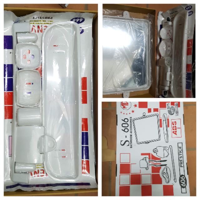 Kệ để đồ , kệ nhà tắm combo 6 món nhựa siêu rẻ S- 606 ( 6 món nhựa rẻ)Kệ nhà tắm bao gồm : kệ kính , lô giấy , vắt khăn đơn , kệ cốc đơn , vắt khăn và 1 gương kích thước 60*40