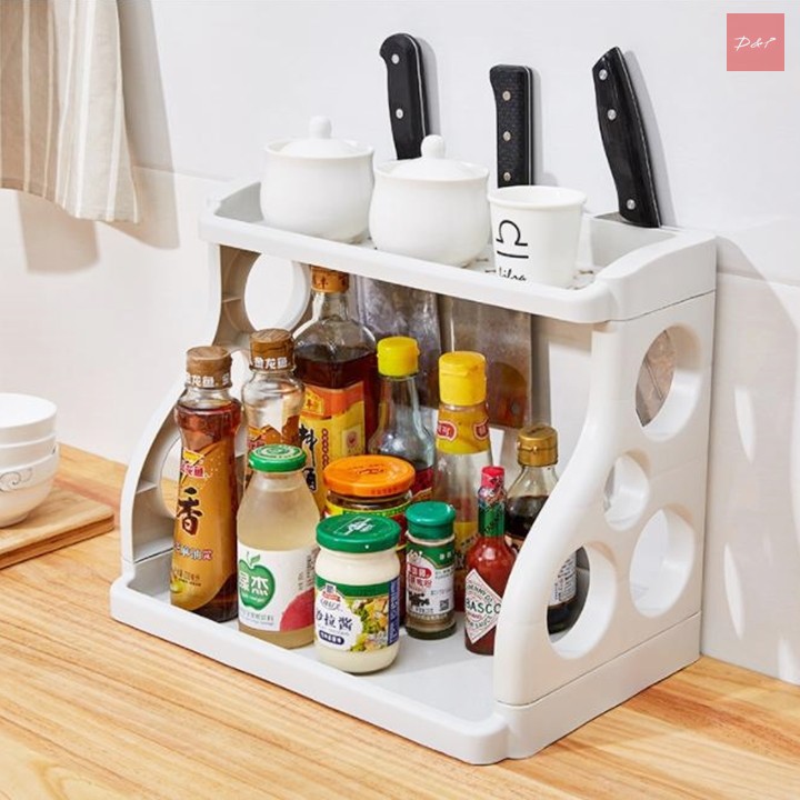 Kệ để đồ nhà bếp, nhà tắm 2 tầng đa năng- Nhà bếp là nơi chứa khá nhiều vật dụng khác nhau như các loại chai lọ gia vị, mắm muối, dao, thớt … Có nhiều giải pháp để giúp chúng gọn gàng sử dụng kệ để mặt bàn, kệ treo tường hay tủ, phương án tiện lợi hơn cả đó là sử dụng kệ để đồ nhà bếp, nhà tắm 2 tầng đa năng