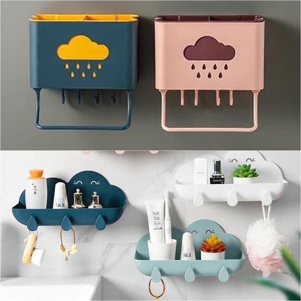 Nhà cửa & Đời sống > Đồ dùng phòng tắm > Kệ để đồ phòng tắm || Kệ để đồ nhà bếp, phòng tắm có móc treo cao cấp giá kệ đựng bàn chải kem đánh răng dán tườngCòn hàng