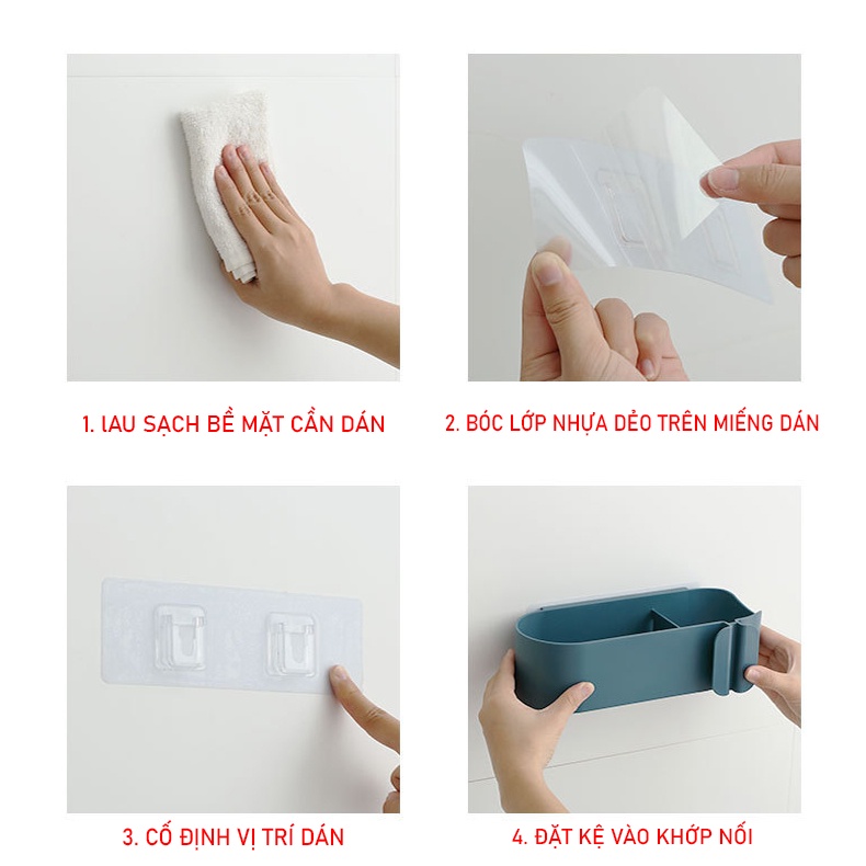 + Kệ để đồ nhà tắm thiết kế thông minh với khả năng dán tường bằng miếng dán chịu lực, không cần dùng đinh khoan làm hỏng tường