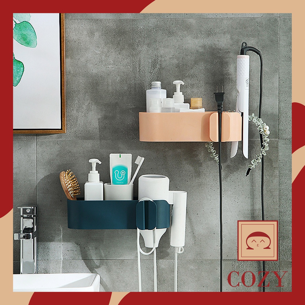 + Kệ để đồ nhà tắm có giá treo máy sấy tóc tiện lợi, phù hợp với mọi loại máy sấy