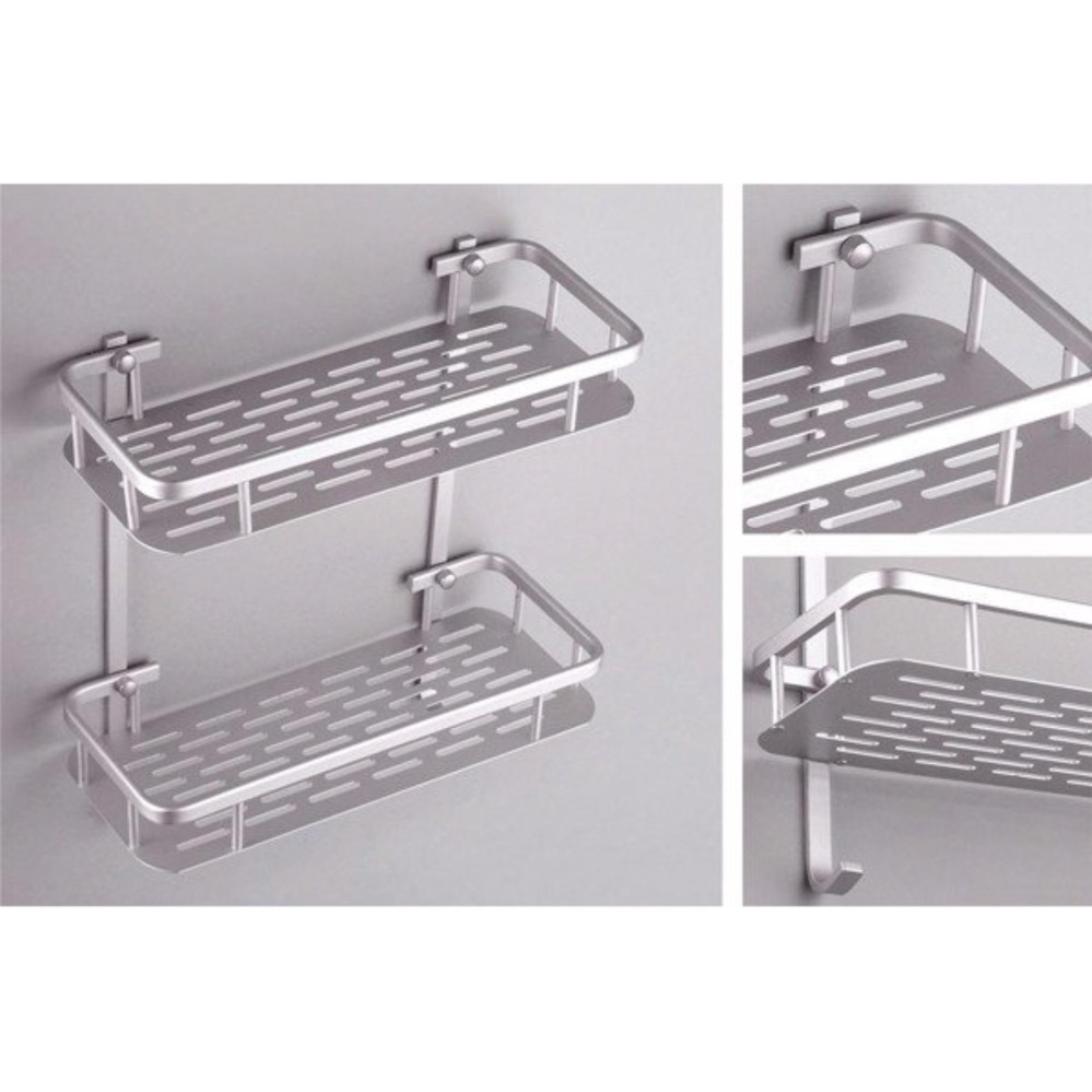 Giới thiệu Kệ để đồ nhà tắm 2 tầng Chữ Nhật nhôm hàng đẹp KT:30x36x13 cm