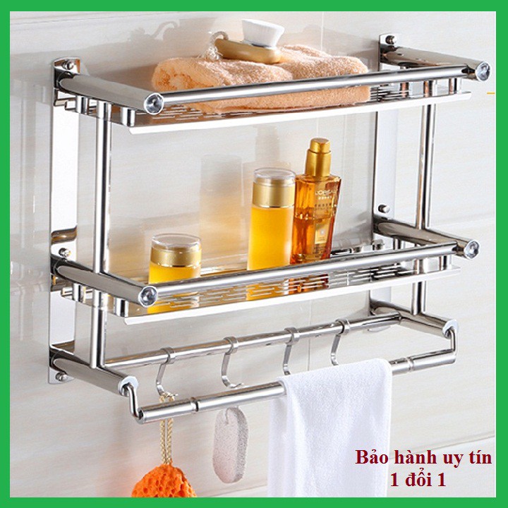 Kệ để đồ nhà tắm 2 tầng, treo tường, chất liệu inox 304, không cần khoan đục rất tiện lợi
