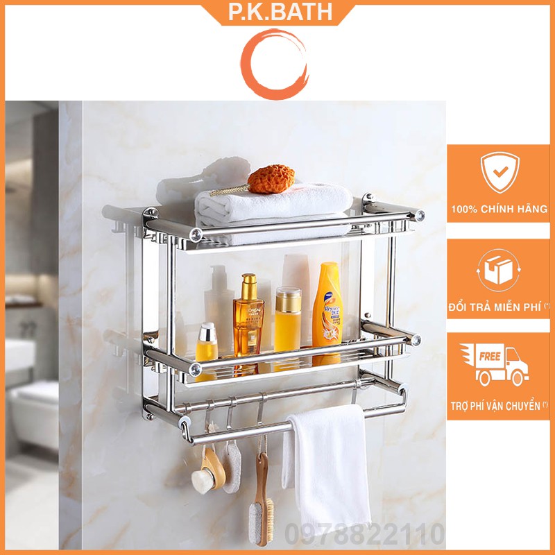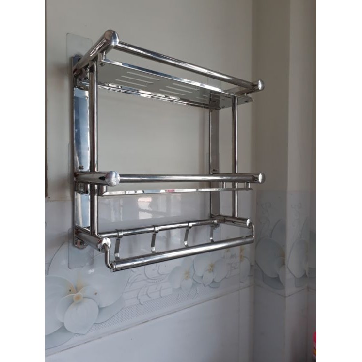 - Kệ treo khăn 2 tầng inox giúp cho không gian phòng tắm nhà bạn thêm sang trọng.