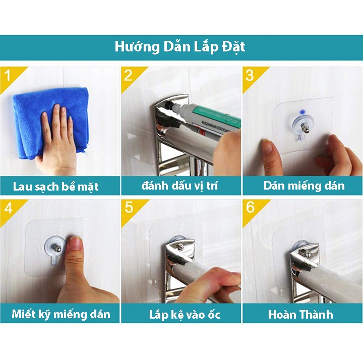 - Bộ gồm kệ inox + bộ dính tường + bộ vít nở đi kèm