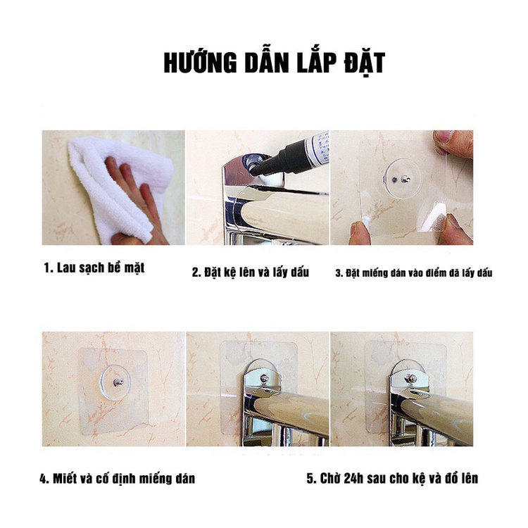 - Bộ gồm kệ inox + bộ dính tường + bộ vít nở đi kèm